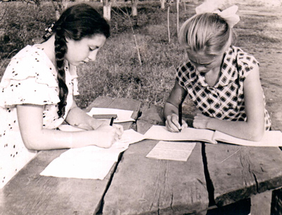 Лариса Петелева (слева) в пионерском лагере на ж. д. ст. Минутка. Кисловодск, 12 июля 1959 г.. Фото из личного архива Л. А. Штавдакер