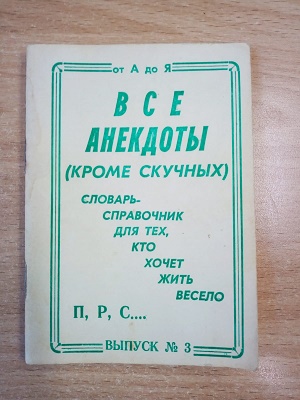 Основные же торговые точки нашей организации располагались на авто и железнодорожных вокзалах Ростова. Репертуар мобильной библиотеки, подготовленный нашей фирмой для любителей почитать в дороге, включал небольшие брошюры, преимущественно в мягком переплёте. Самым массовым товаром среди этих изданий были разнообразные сборники анекдотов. Отпущенные на волю в период перестройки и гласности всякого рода смешные истории в те времена переживали свой золотой век. Их рассказывали по телевидению и по радио, устраивали творческие турниры знатоков анекдотов или обаятельные посиделки деятелей культуры и искусства, преуспевших в собирательстве и исполнении этого вида устного народного творчества. Вспомним хотя бы популярнейший телевизионный клуб «Белый попугай» с Аркадием Аркановым, Григорием Гориным, Александром Ширвиндтом, Юрием Никулиным и другими знаменитыми участниками. На это веянье времени тут же отреагировали местные издательства и на прилавках наших вокзальных лотков появилось собрание «ВСЕ АНЕКДОТЫ» (кроме скучных) Словарь справочник для тех, кто хочет жить весело».